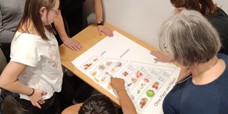Beim regelmäßigen LNW-Kreis trafen sich Kund*innen und Mitarbeiter*innen. Sie haben über die Ernährungspyramide gesprochen und aktiv mitgemacht. Zum Aufwärmen gab es kurze, bewegte Aufgaben. Wir stellten uns in einer Reihe auf und sortierten uns:  Wer stand heute am frühesten auf,…