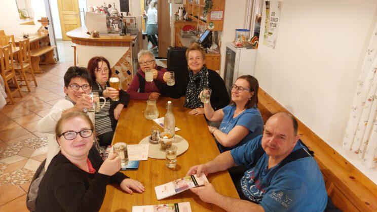Wir haben eine gute Jause und einen „Spritzer“ bestellt.