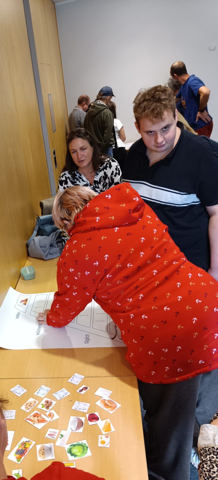 Im nächsten Schritt ordneten die Teilnehmenden Nährstoffgruppen (z. B. Kohlenhydrate, Eiweiß, Fette) passenden Lebensmitteln zu.