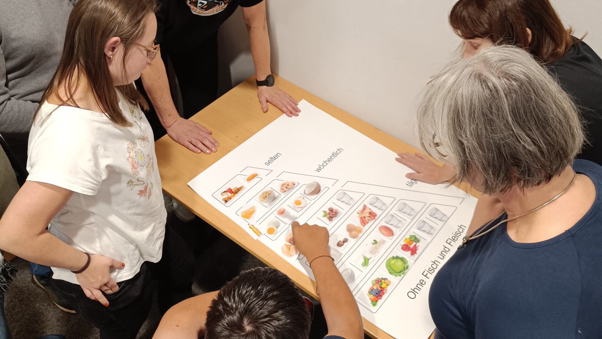Anschließend bildeten wir Gruppen: „Ich esse alles“ und „Ich esse kein Fleisch und keinen Fisch“.