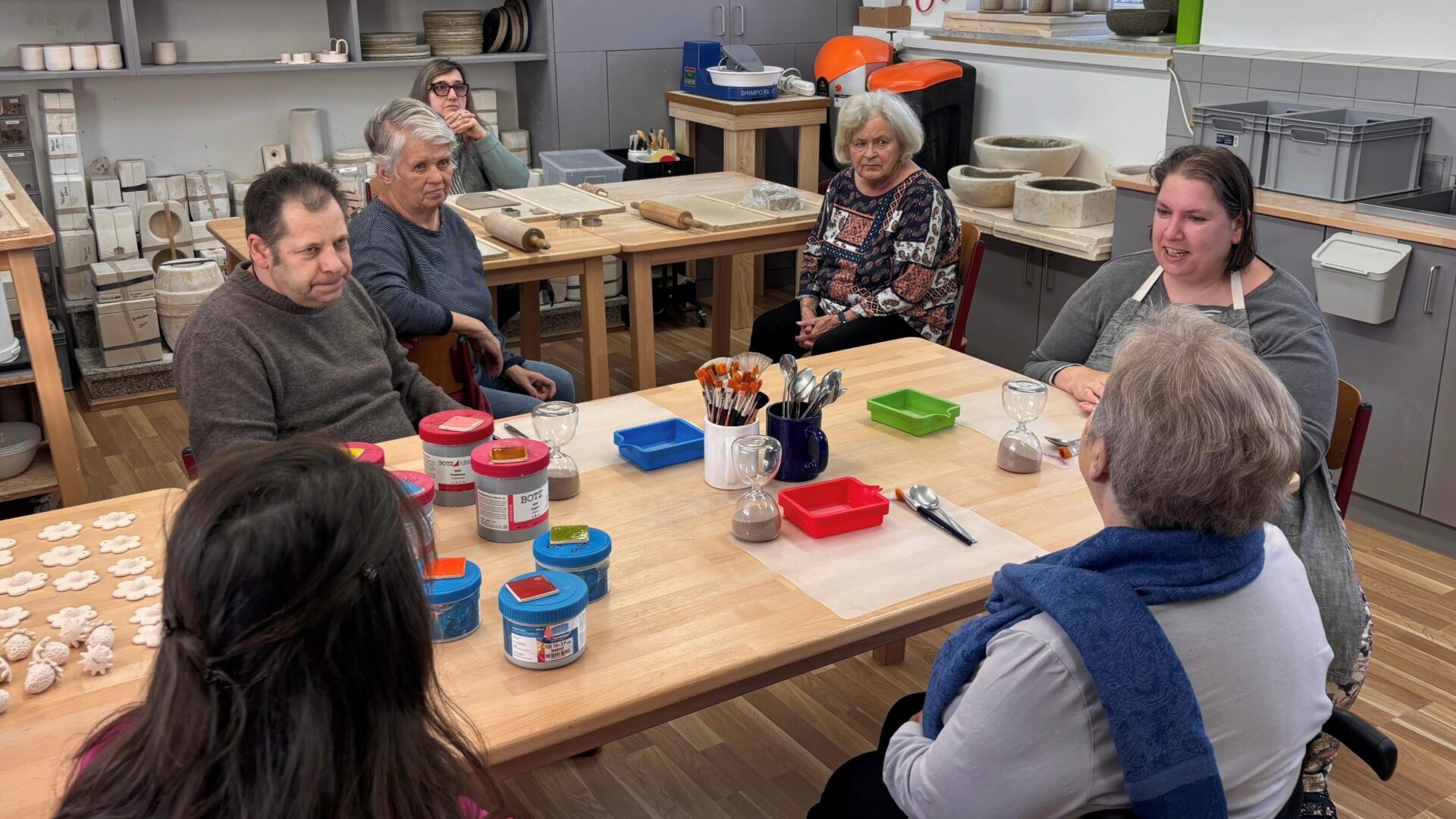 Zur Begrüßung hat Andrea von unserer Arbeit und unserem Arbeitsalltag in der Werkstätte erzählt. Alle haben interessiert zugehört.