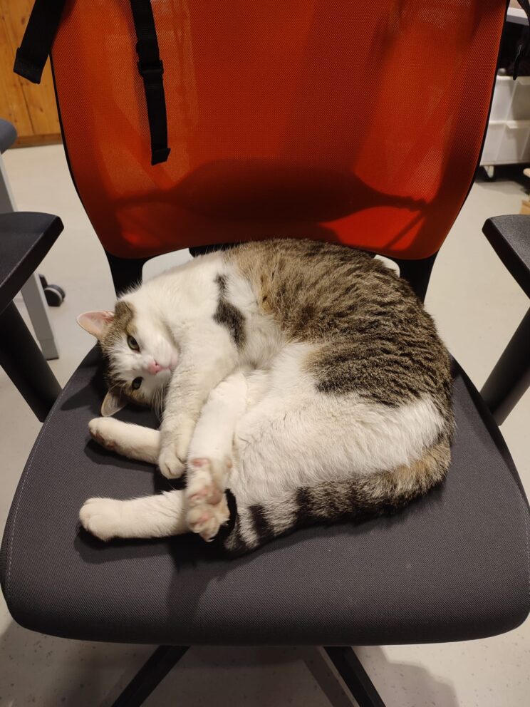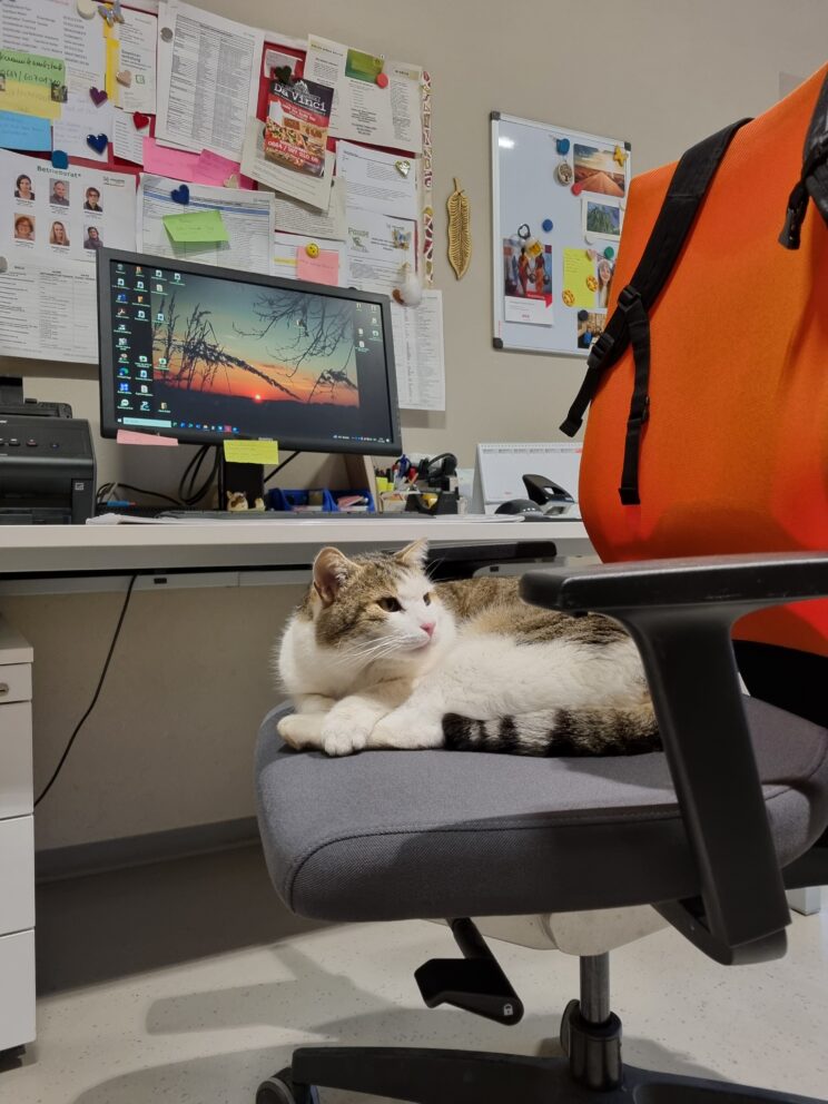 Für viele von uns ist sein Besuch inzwischen ein kleines tägliches Highlight. Ein paar Minuten schnurren, ein paar Streicheleinheiten – und schon fühlt sich der Arbeitstag gleich ein bisschen leichter an.